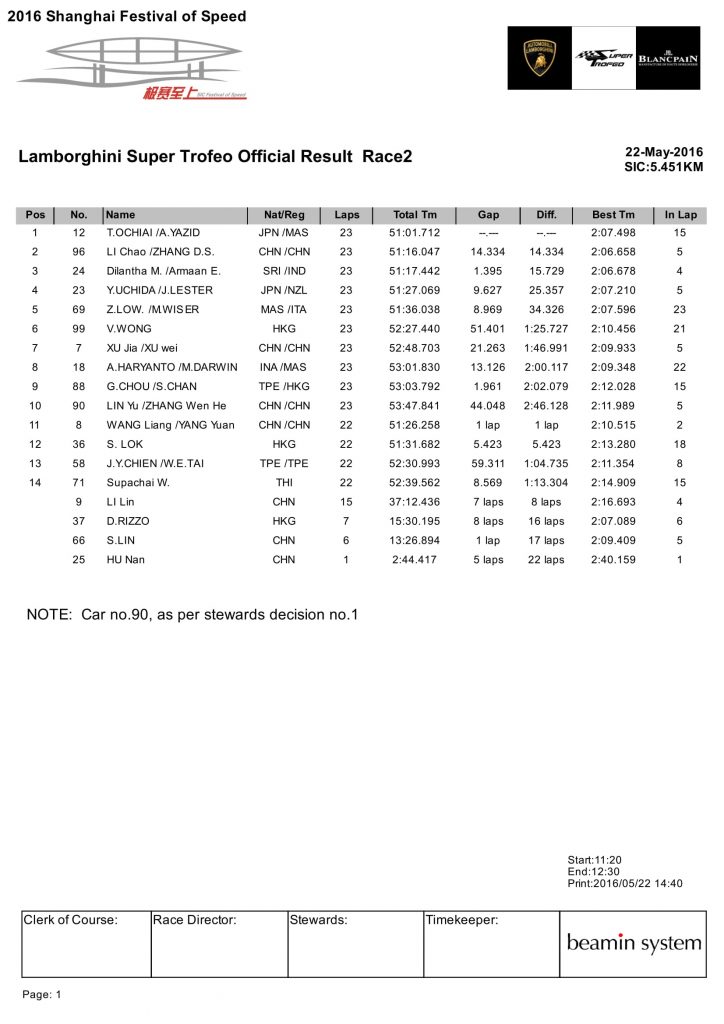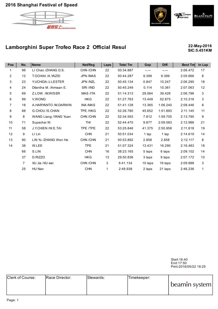 2016 Lamborghini Blancpain Super Trofeo Asia Series Round 1 – Shanghai – Race