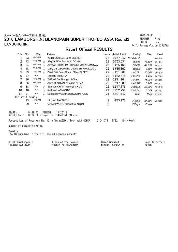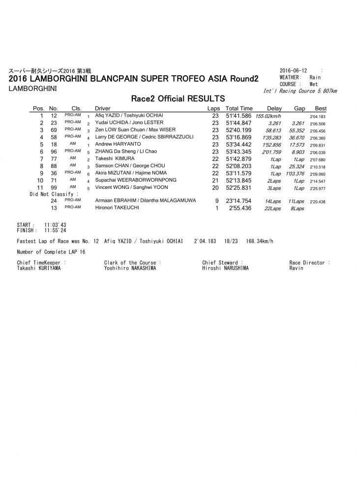 2016 Lamborghini Blancpain Super Trofeo Asia Series Round 2 – Suzuka – Race