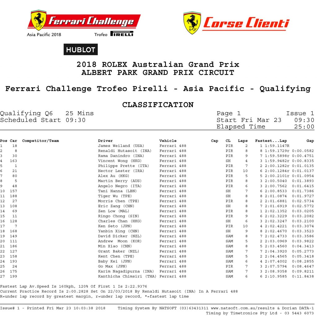 2018 Ferrari Challenge Asia Pacific Round 1 – Melbourne – Qualifying 1