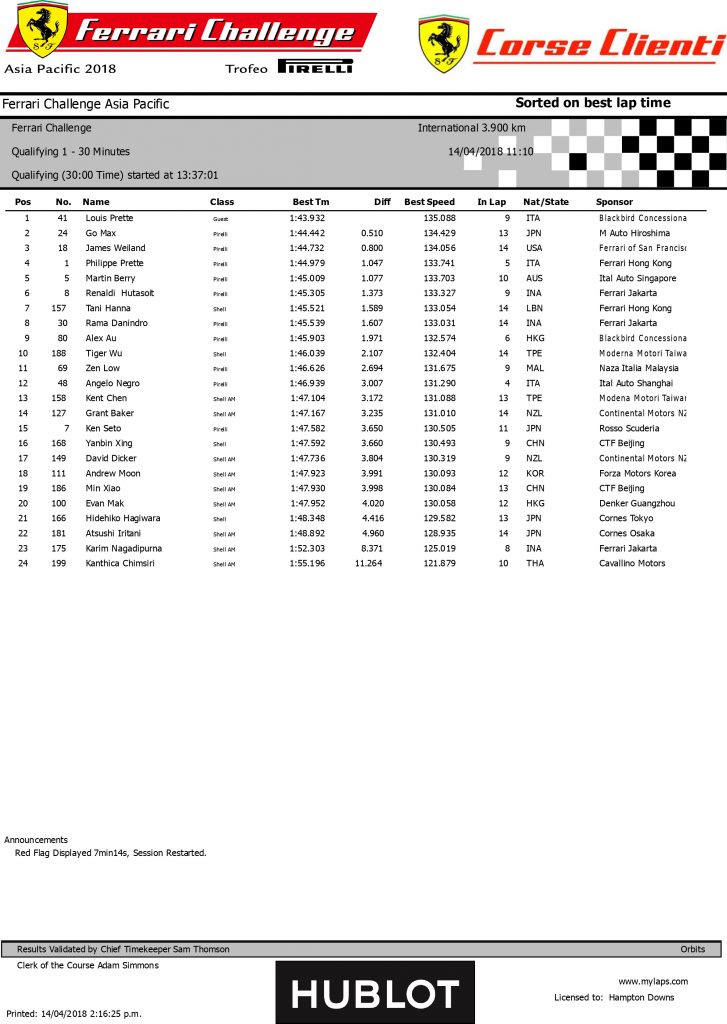 2018 Ferrari Challenge Asia Pacific Round 2 – Hampton Downs – Qualifying 1
