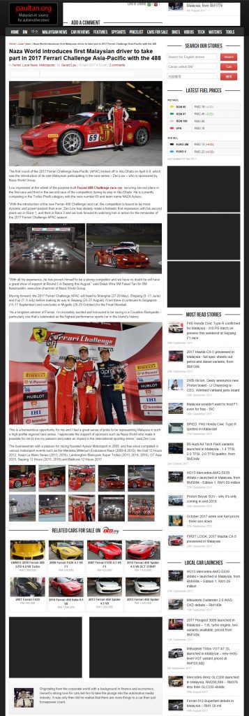 News source: https://paultan.org/2017/04/18/naza-world-introduces-first-malaysian-driver-to-take-part-in-2017-ferrari-challenge-asia-pacific-with-the-488/